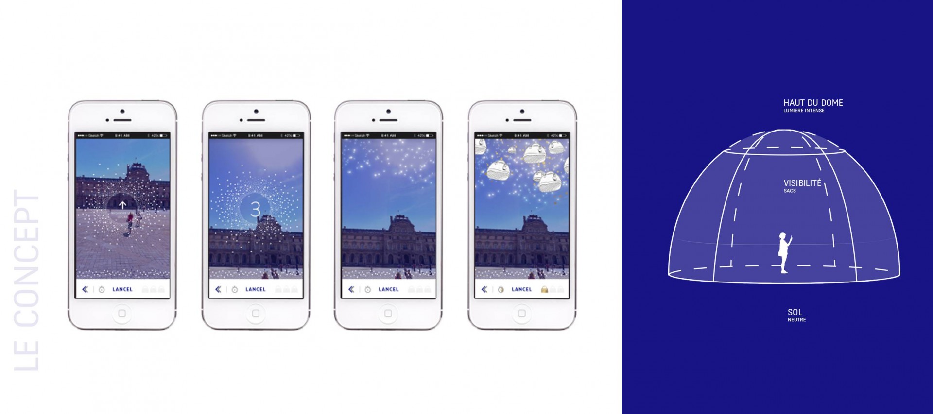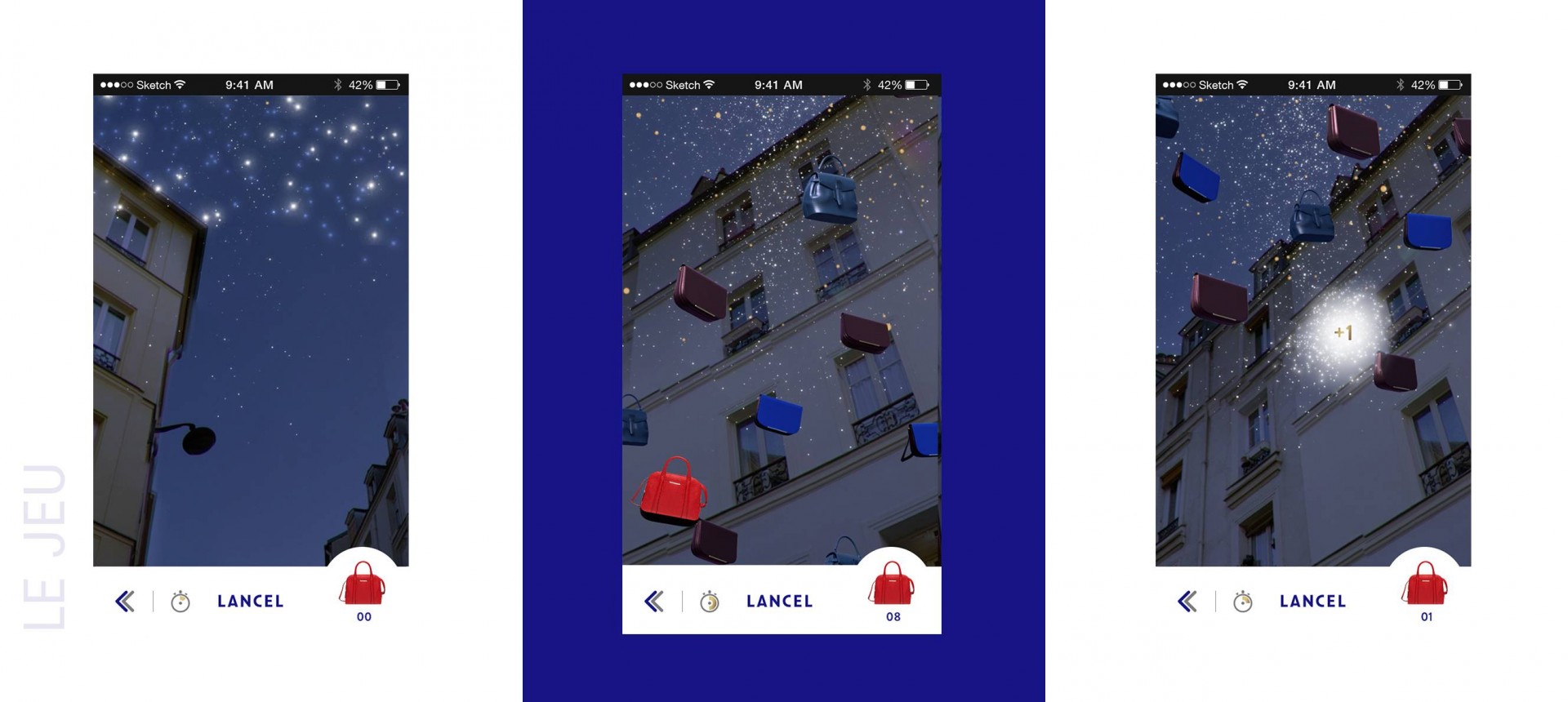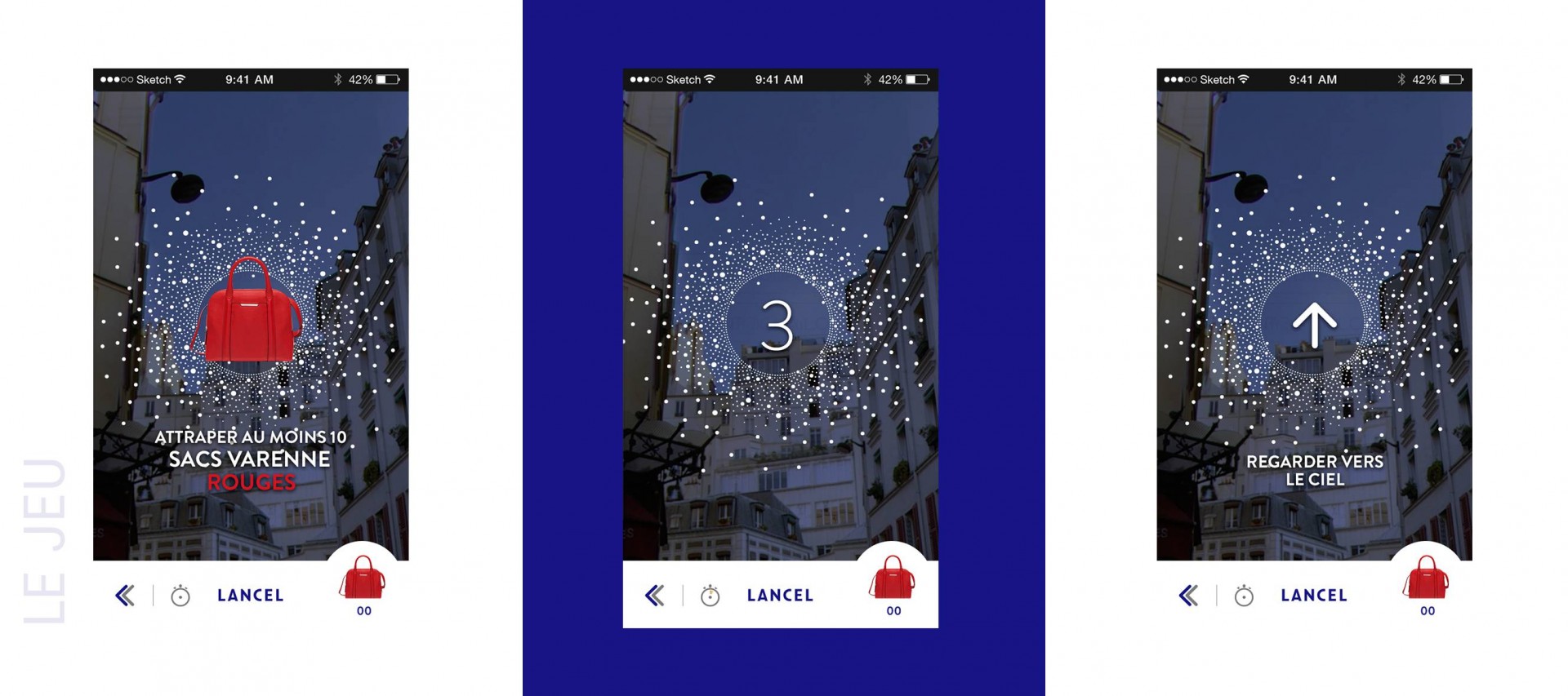 Conception et création graphique d’une application en réalité augmentée qui fait apparaitre des sacs de la collection en 3D autour du joueur.